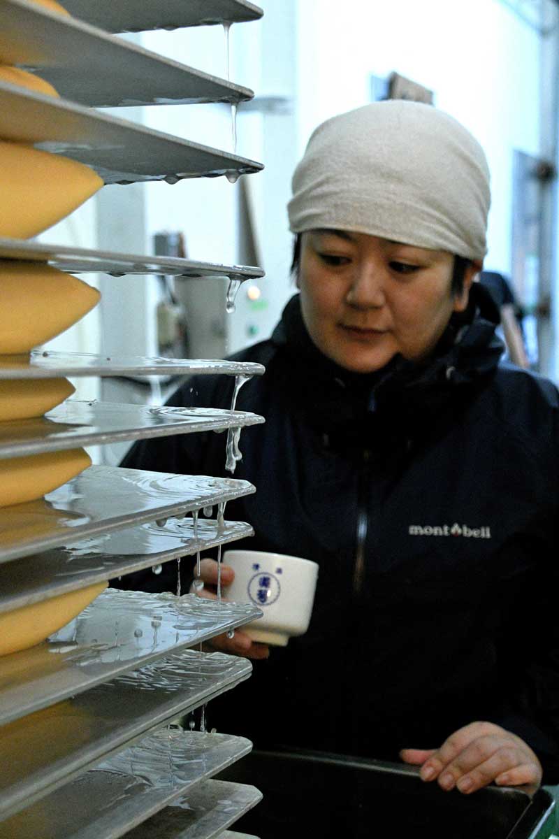 Ganz im Westen der Region Setouchi, in der Präfektur Yamaguchi, übernahm Fumiko, eine gelernte Krankenschwester, vor drei Jahren das Brauhandwerk ihres Ehemannes und gewinnt seither internationale Preise. Der derzeitige Eigentümer und Fumikos Ehemann, Yoshinao Shintani, war an der Universität, als sein Vater verstarb und ihm die Brauerei hinterließ. Er war nicht aktiv am Brauereibetrieb beteiligt, aber er war entschlossen, ihn weiterzuführen. Kurz darauf ging der Braumeister in den Ruhestand und mit ihm alle anderen älteren Mitarbeiter, die den Betrieb bis dahin weitergeführt hatten. Unbeirrt entschied sich Yoshinao die Brauerei im Alleingang weiter zu führen. Seine Frau Fumiko unterstützte ihn so gut es ging, während er das Studium der Brauwissenschaften in Tokio absolvierte. Nach der Rückkehr in die Brauerei verkleinerte er sie auf einen Ein-Mann-Betrieb. Yoshinao und Fumiko entwickelten ein Sake-Rezept und einen für ihre Bedingungen perfekten Brauprozess. Wakamusume war wiedergeboren und entwickelte sich von einem bescheidenen lokalen Gebräu zu einem Getränk, das internationale Preise und nationale Verehrung gewann. Ziemlich beeindruckend, für eine Brauerei mit nur zwei Mitarbeitern. Sie ist eine der kleinsten in Japan!