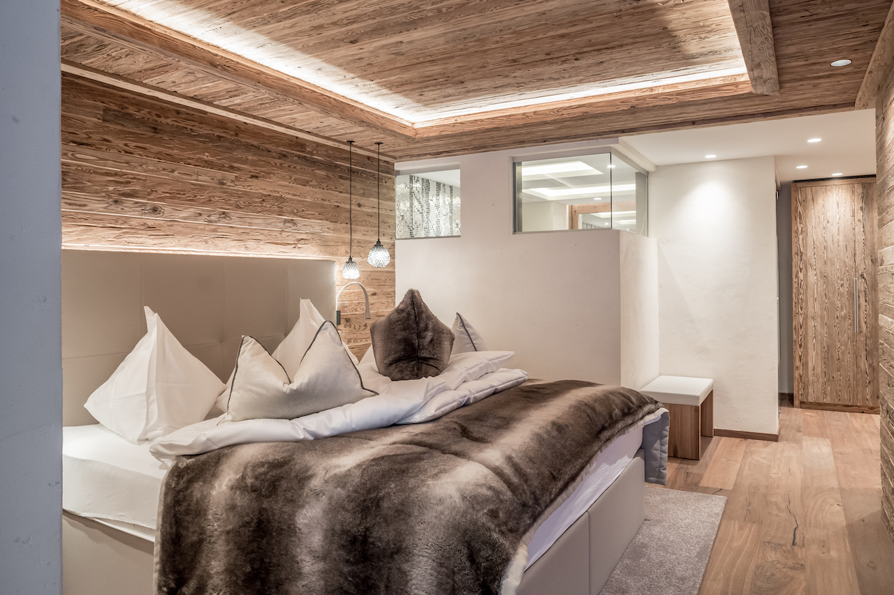 Luxuriöse Ausstattung und elegantes Wohnen bestimmen das Ambiente der traditionell bis edel-alpinen Zimmer und Suiten. Die großzügige und stilvolle Gestaltung der Suiten bietet extra Raum zum Wohlfühlen. Ob rustikale Romantik oder modernes Wohnen im noblen Altholz-Look - allen Zimmerkategorien gemein ist das hochwertige al- pin-chic-Design.