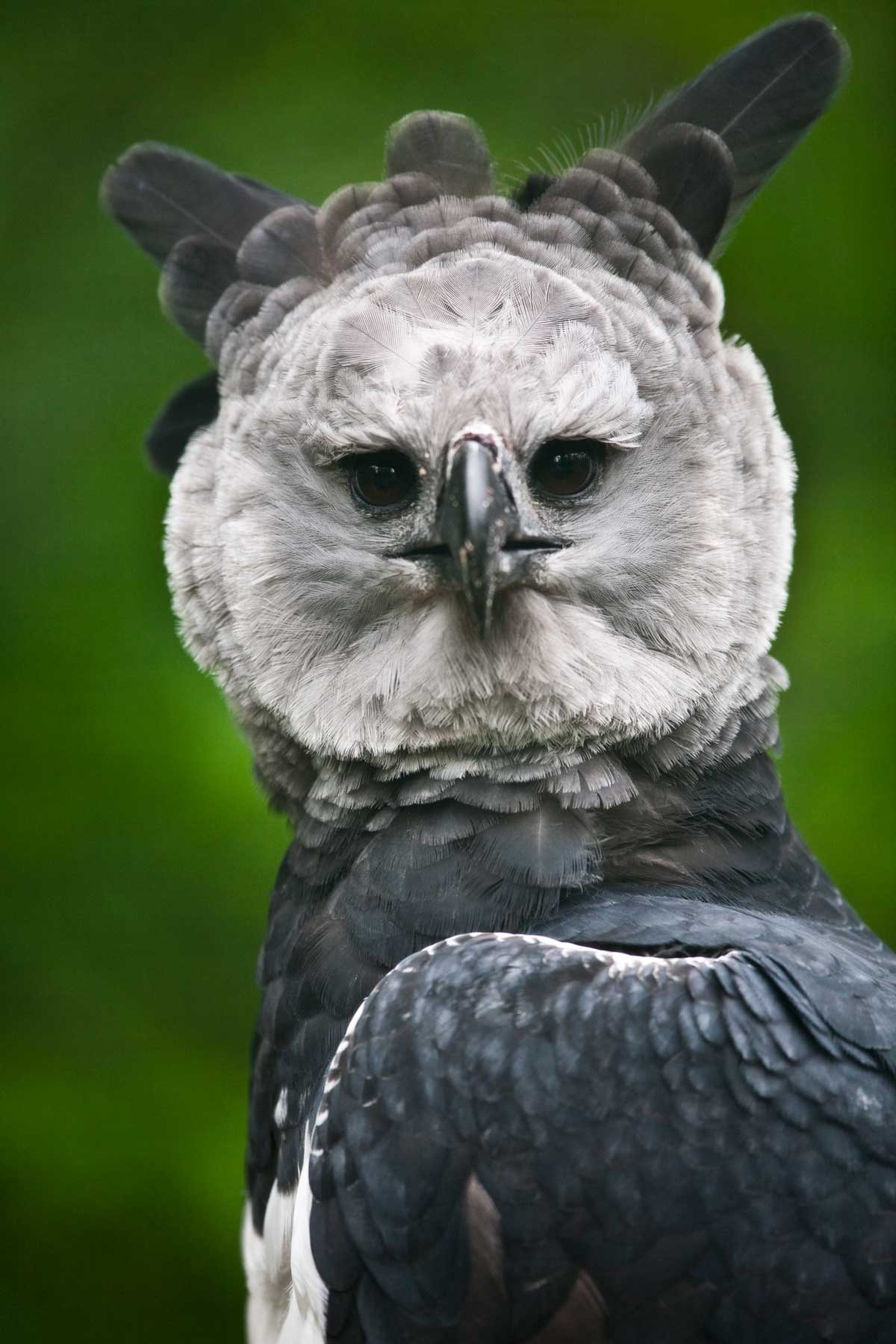Die Harpyie (Harpia harpyja) ist eine der wohl stärksten und mächtigsten Greifvogelarten der Welt. Ihr besonderer Name entstammt der griechischen Mythologie, wo die Harpyie eine gefürchtete Sturmdämonin mit scharfen Krallen, Frauenkopf und einem Greifvogelkörper beschreibt. Sie ist nicht nur für ihre beeindruckende Größe und ihr prächtiges, weiches Gefieder bekannt, sondern auch besonders gefürchtet aufgrund ihrer kräftigen Klauen. Mit einer Flügelspannweite von bis zu zwei Metern und einer Körperlänge von bis zu einem Meter ist die Harpyie eine beeindruckende Erscheinung. Weibchen sind mit einem Gewicht von bis zu 9 kg deutlich größer und stärker als die „nur“ 4 – 5 kg schweren Männchen. Was viele Besucher nicht wissen – in freier Wildbahn bewohnt sie die dichten Regenwälder in Mittel- und Südamerika. Sie wird bereits auf der Roten Liste bedrohter Tierarten als „gefährdet“ geführt – bedroht durch den Verlust des Regenwaldes mit passenden Nistbäumen und Beutetieren sowie durch illegale Jagd und Wilderei!