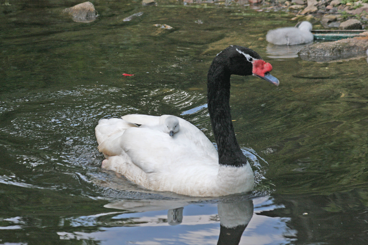 Weitere Highlights entlang des Kranichsees sind drei Küken der Schwarzhalsschwäne (Cygnus melanocoryphus) aus Südamerika. Das Weibchen bebrütet die Eier zwar allein, doch nach dem Schlupf kümmern sich beide Eltern liebevoll um die Küken. Auch in anderen Teilen des Parks gibt es Nachwuchs zu bewundern. In der Meeresentenanlage sind kleine Säbelschnäbler (Recurvirostra avosetta) zu sehen, die bereits kurz nach dem Schlupf das Nest verlassen. Ihr noch gräulich-braun-geflecktes Tarngefieder schützt sie hervorragend vor Fressfeinden. In der Fasanerie sorgt ein bereits flügge gewordenes Jungtier der Celebes-Tariktikhornvögel (Rhabdotorrhinus exarhatus) für Aufsehen. Diese kooperativen Brüter leben – ungewöhnlich für Hornvögel – in Familiengruppen werden in freier Wildbahn bei der Aufzucht von älteren Nachkommen aus Vorjahren unterstützt. Das Brutpaar kam ursprünglich aus dem Zoo von San Diego und ist seit 2012 in Walsrode. Hier hat es schon mehrfach erfolgreich Jungtiere aufgezogen.